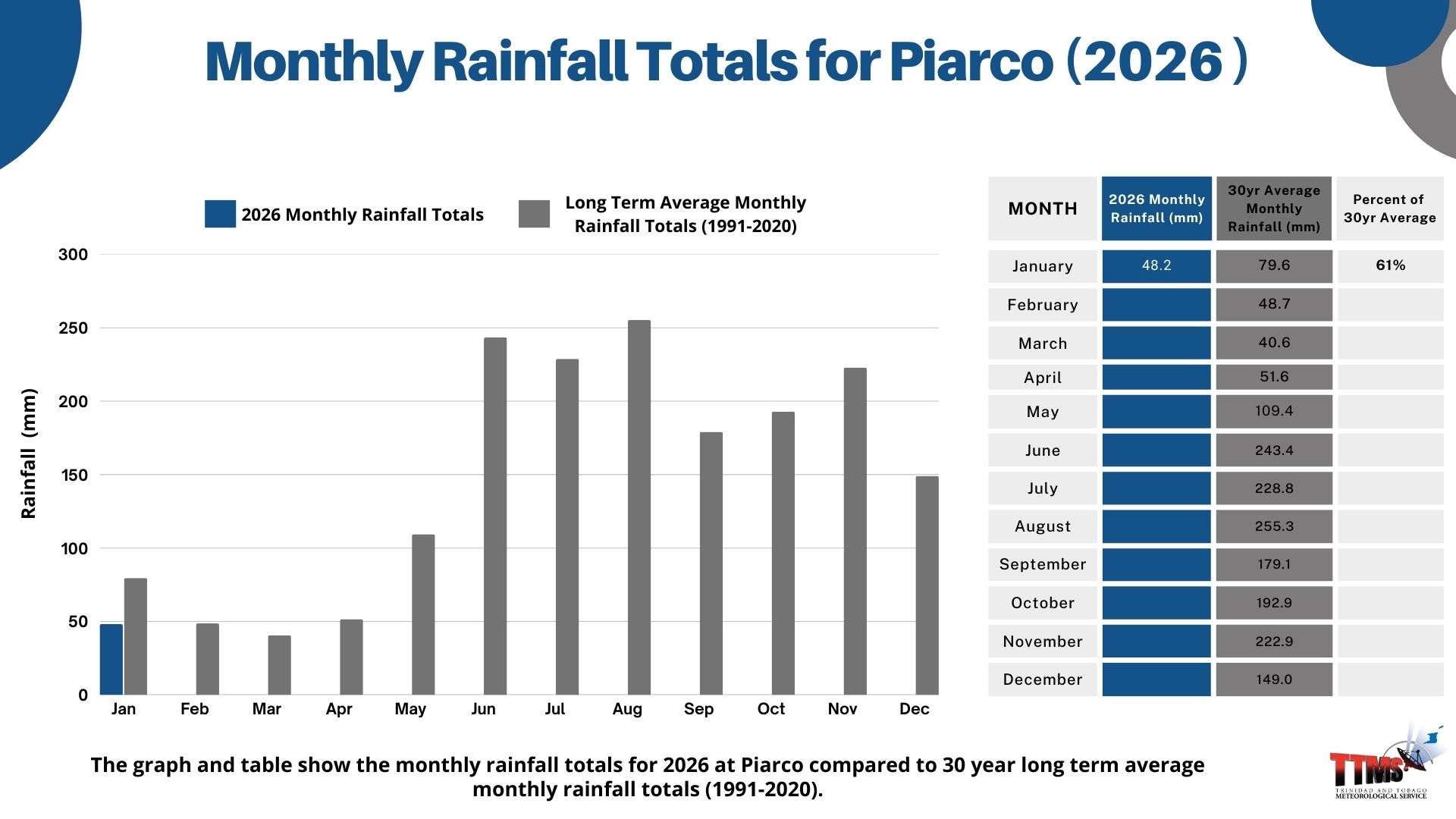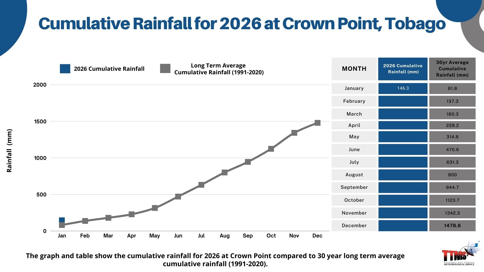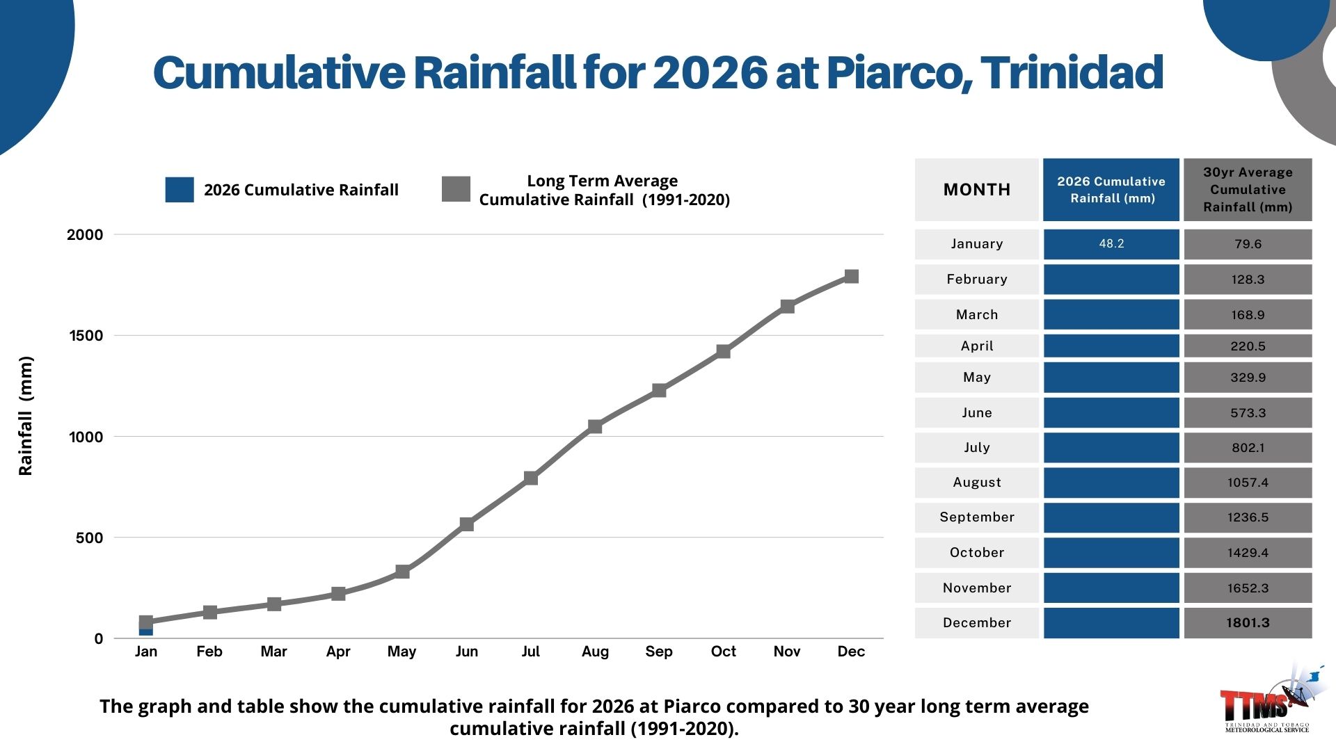 The long-term average, known as the climatological normal, shows the latest set of 30-year averages, covering the period 1991-2020, for the reference climatological stations at Piarco, Trinidad and Crown Point, Tobago.