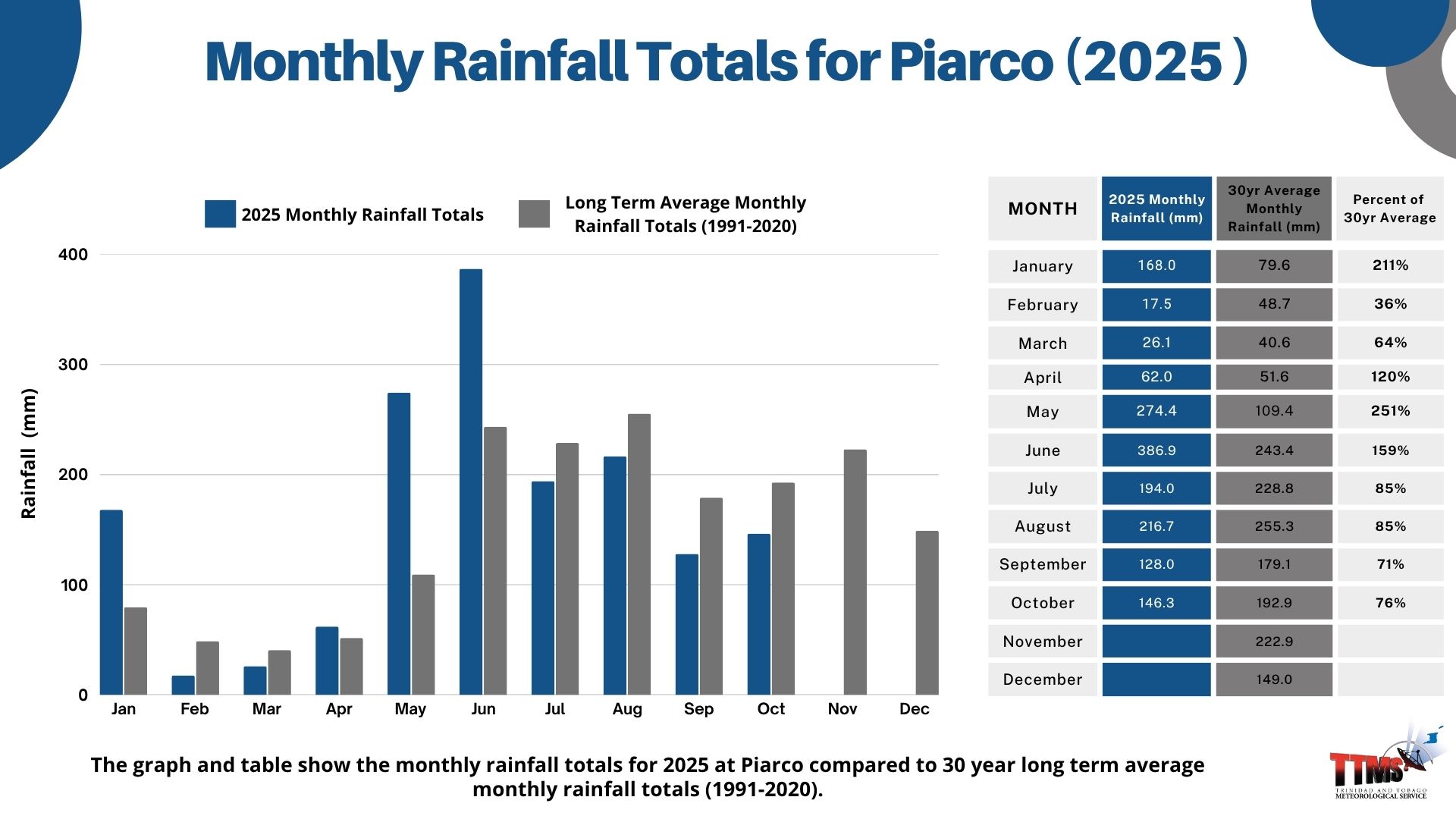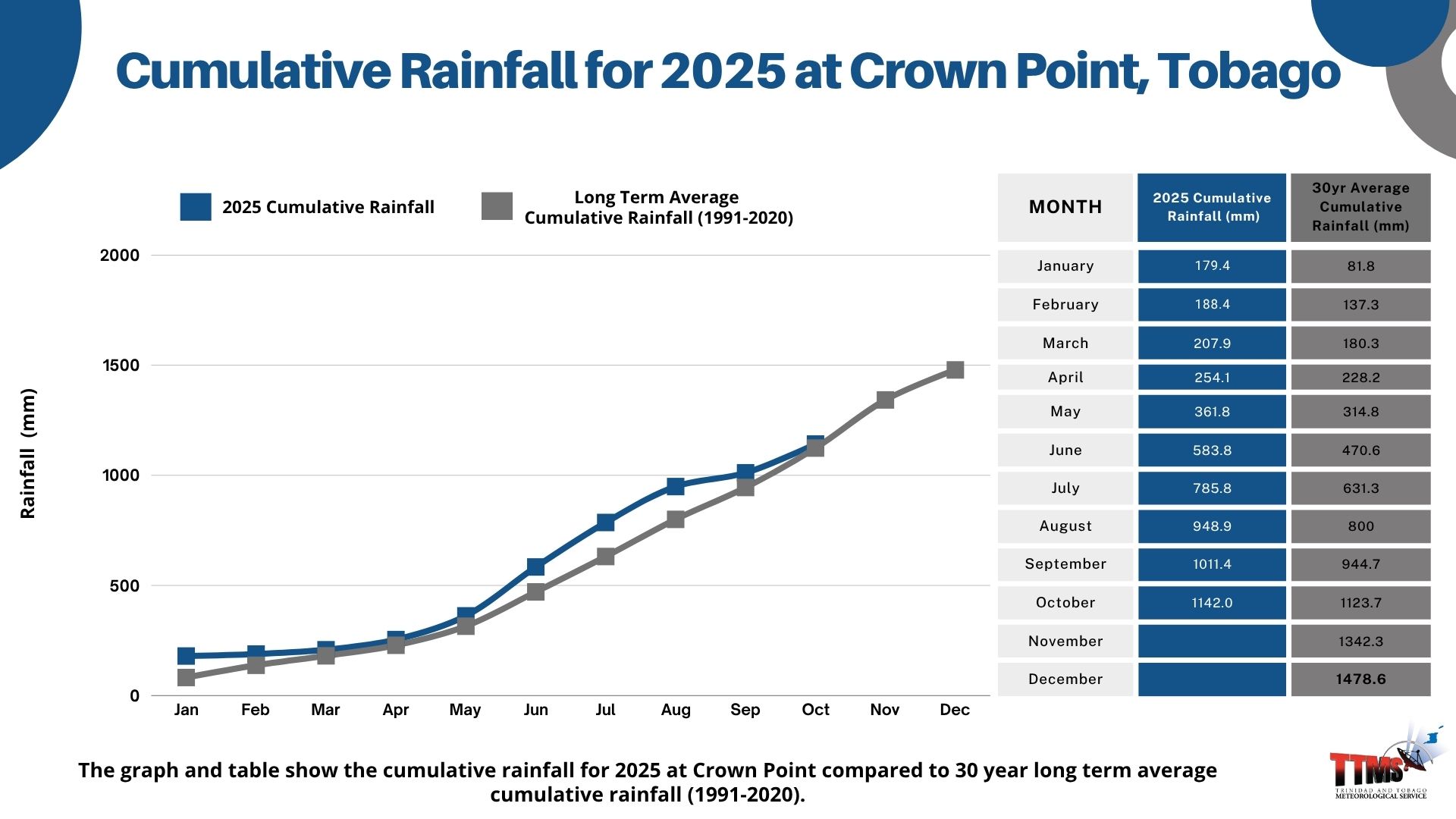 The long-term average, known as the climatological normal, shows the latest set of 30-year averages, covering the period 1991-2020, for the reference climatological stations at Piarco, Trinidad and Crown Point, Tobago.